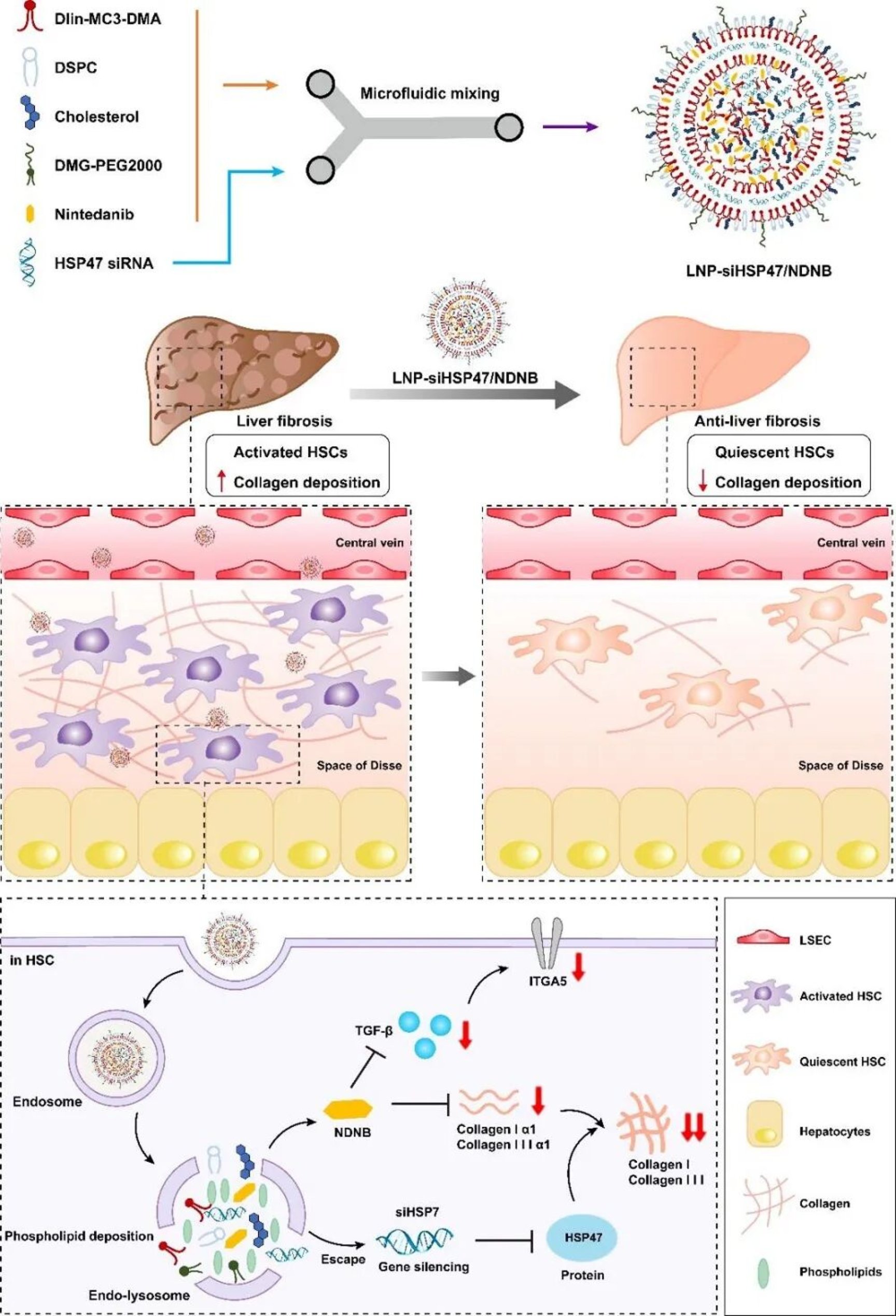 北京大学王坚成团队开发了一种尼达尼布与HSP47 siRNA共递送的脂质纳米颗粒系统